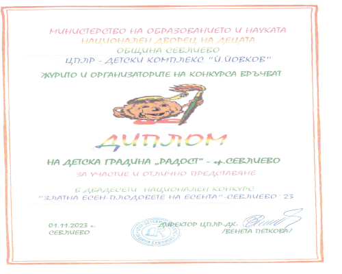 XX Национален конкурс "Златна есен - плодовете на есента" - Севлиево 23 (деца)
